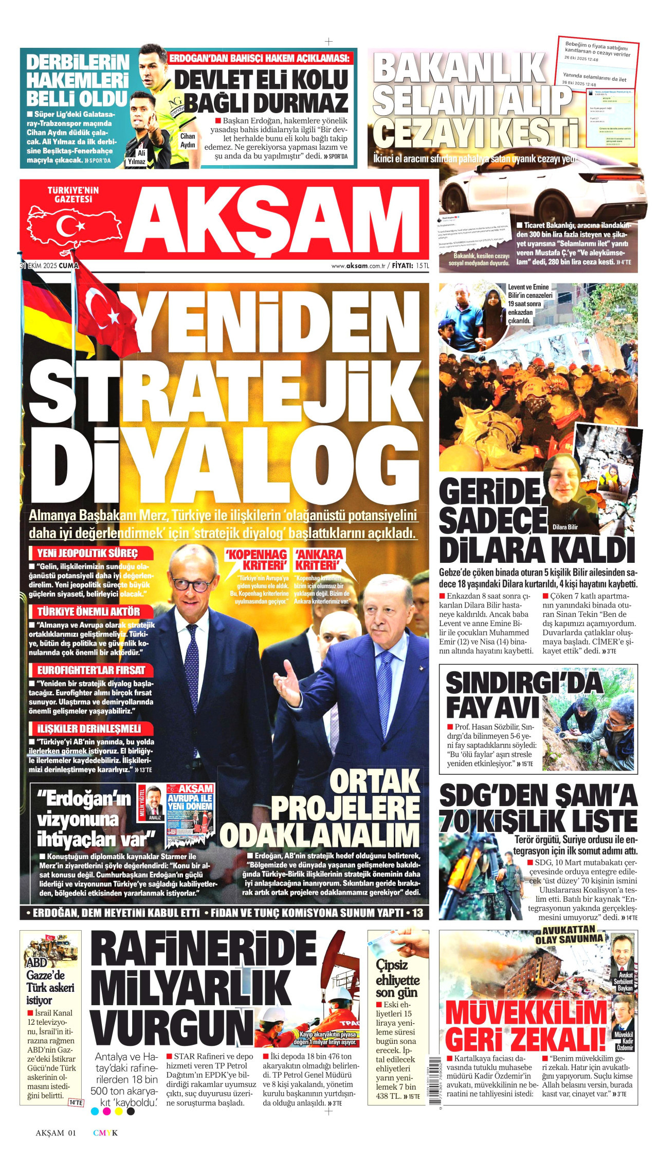 AKŞAM Gazetesi 31 Ekim 2025, Cuma Günü Manşeti